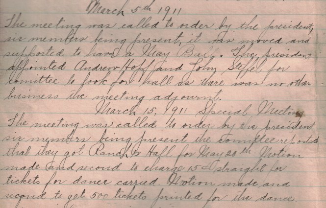 The May Ball went off as planned on May 20, 1911.  The Income & Expense Report presented after the dance is hard to decipher and I am not sure if they made or lost money but I can say this: In 1912 when the subject came up again, they decided to pass.