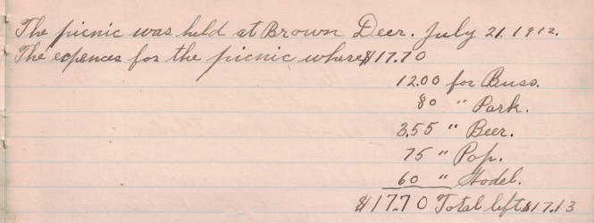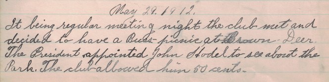 Notice that this was referred to as a “Buss Picnic” and the most expensive item was the “Buss”.  Also, they allowed John Hodel 60 cents to make arrangements with the park.  What’s with all that?